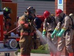 Employees at a Wells Fargo bank were evacuated after a suspicous chemical was found on the tile floor..