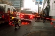 At 11 a.m. emergency sirens converged on the northeast corner of West Broadway and Granville Street.