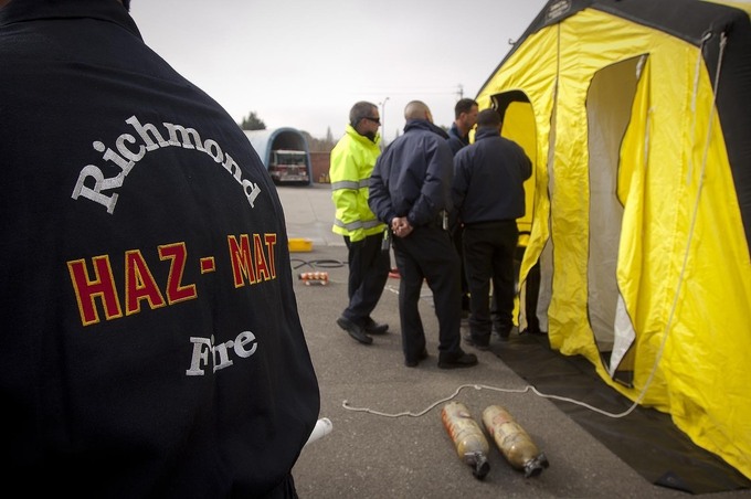 Nine Richmond firefighters trained for a mass casualty drill involving hazardous materials Saturday morning.