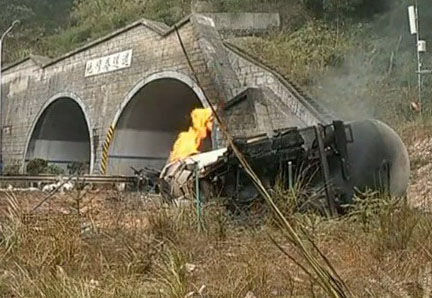 Caught on CCTV, a gas tanker exploded in central China on Saturday, killing three firemen and sending out a wave of white smoke.